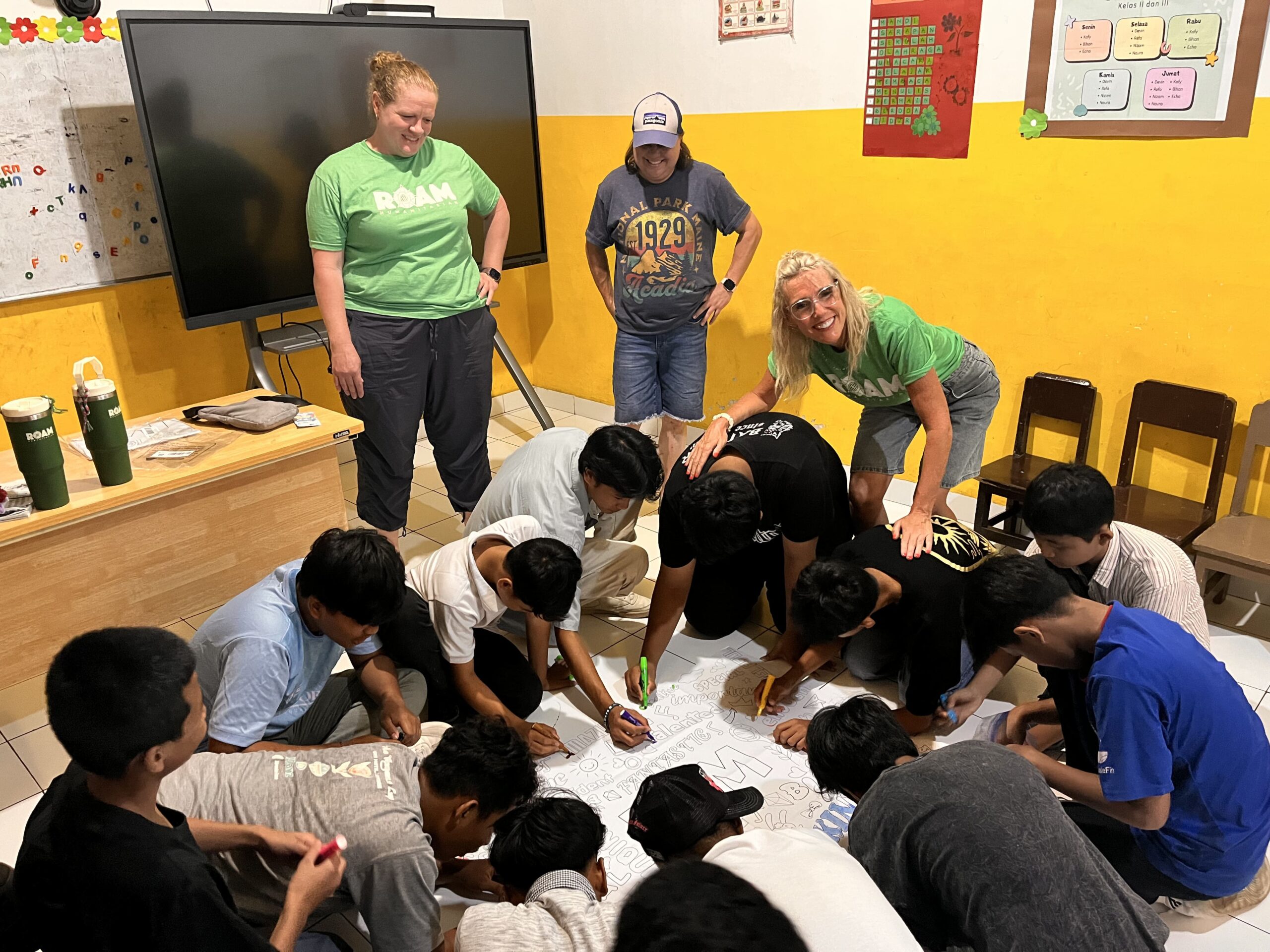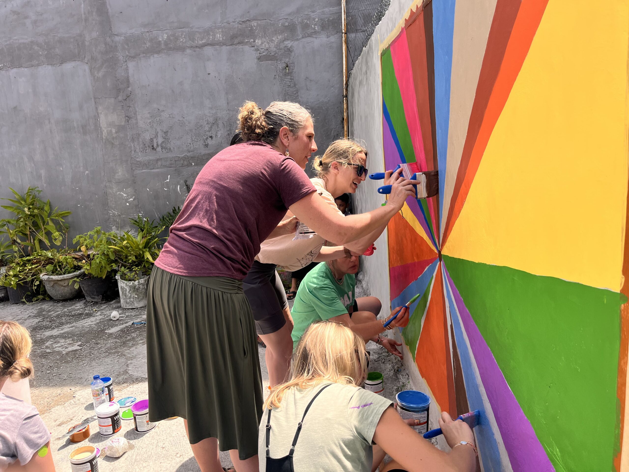 The ROAM volunteers worked with students and teachers to create colorful murals around the school grounds and refresh playground equipment. Beyond the physical improvements, volunteers also spent time inside classrooms engaging with the children through activities and conversations.